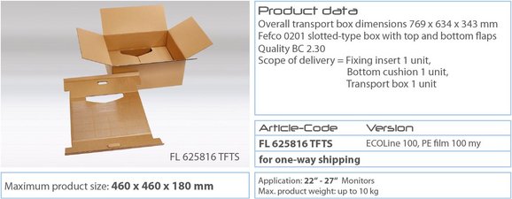 With this special packaging based on the Emba-FLEX® retention packaging, you have an all-purpose system for secure and cost effective shipping of your monitors.