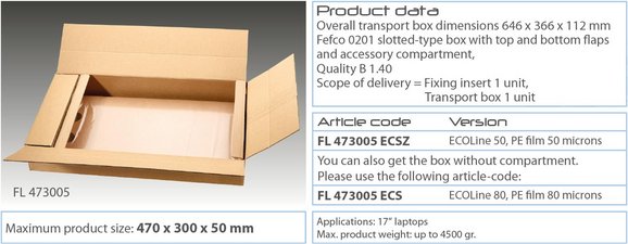 With this special packaging based on the Emba-FLEX® retention packaging, you have an all-purpose system for secure and cost effective shipping of your laptops.
